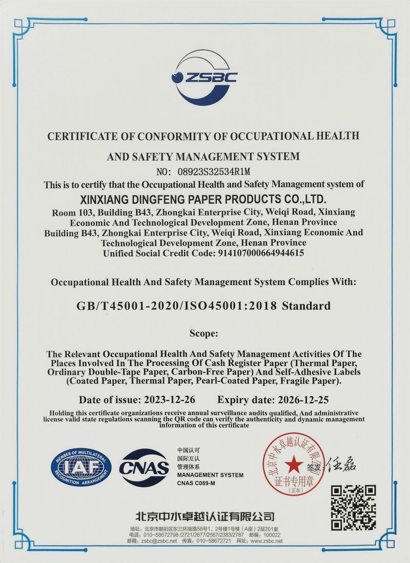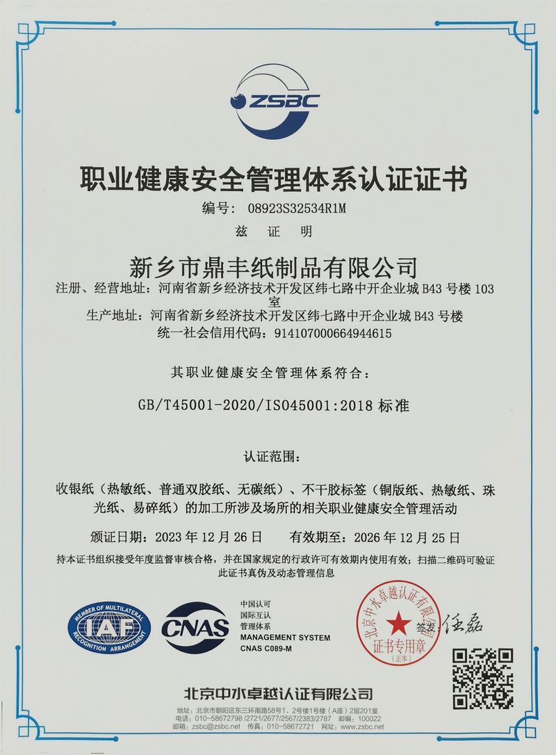 鼎豐職業(yè)健康體系認(rèn)證45001英文