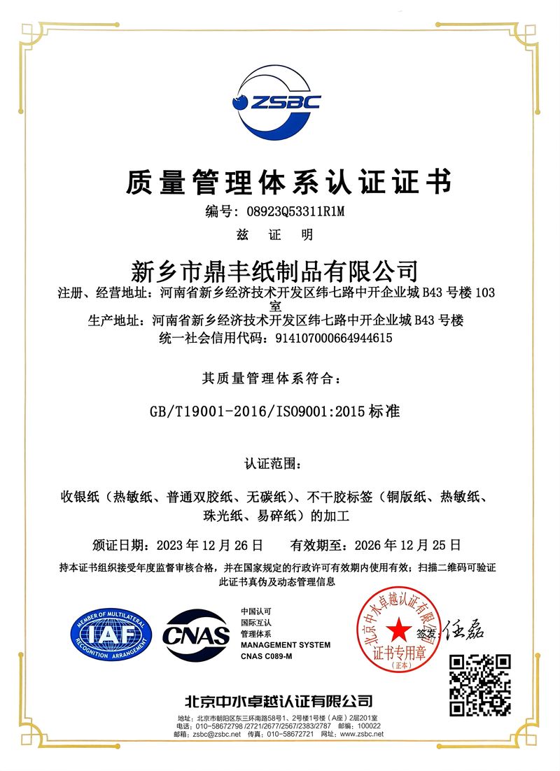 • 鼎豐質(zhì)量體系認(rèn)證19001