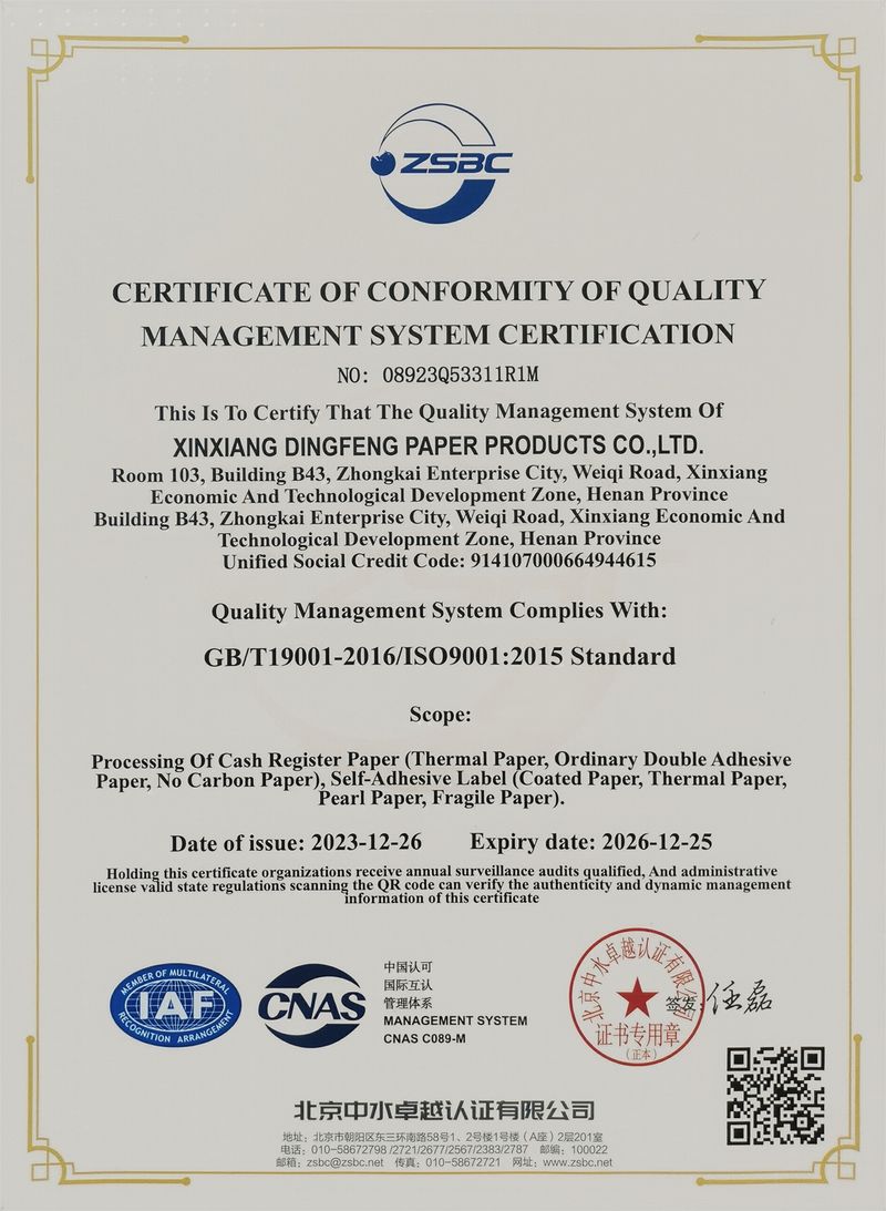 • 鼎豐質(zhì)量體系認(rèn)證19001英文